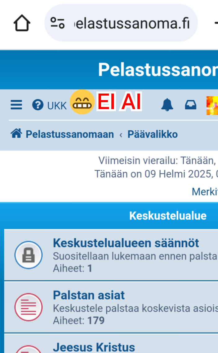 Tuo merkintä on hyvä asia, vielä parempi olisi ettei tekoäly tuotoksia foorumilla olisi ollenkaan, ei kuvia eikä tekstiä.
