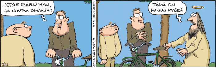 Mun mielestä tää on jopa profetaalisesti hauskaa ja varmaan pysäyttää pilapiirtäjä Jarlan aikanaan.