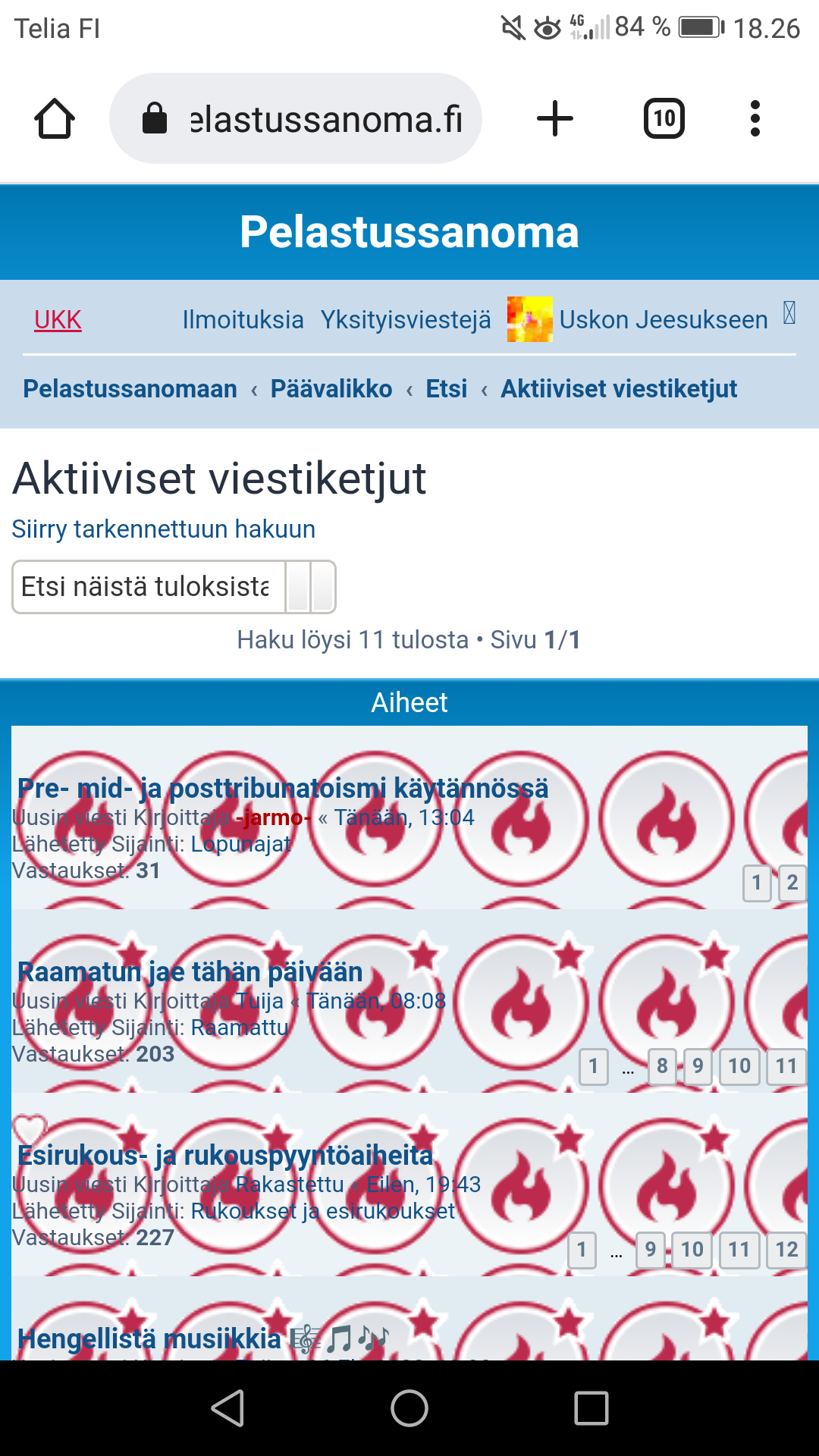 Tervetuloa takaisin palstalle! Herramme Jeesuksen Kristuksen Siunausta!