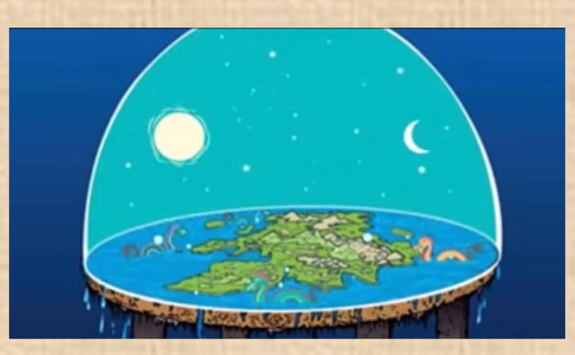 Litteää maata kerrotaan ympäröivän jäätyneestä hapesta muodostunut taivaankansikupu, johon kaikkien rakettien kerrotaan pysähtyvän... satelliitteja ei niitäkään tiemmä ole... ISS-avaruusaseman kerrotaan olevan suuressa vesialtaassa siksi että saataisiin vaikutelma että astronautit olisivat avaruudessa...
