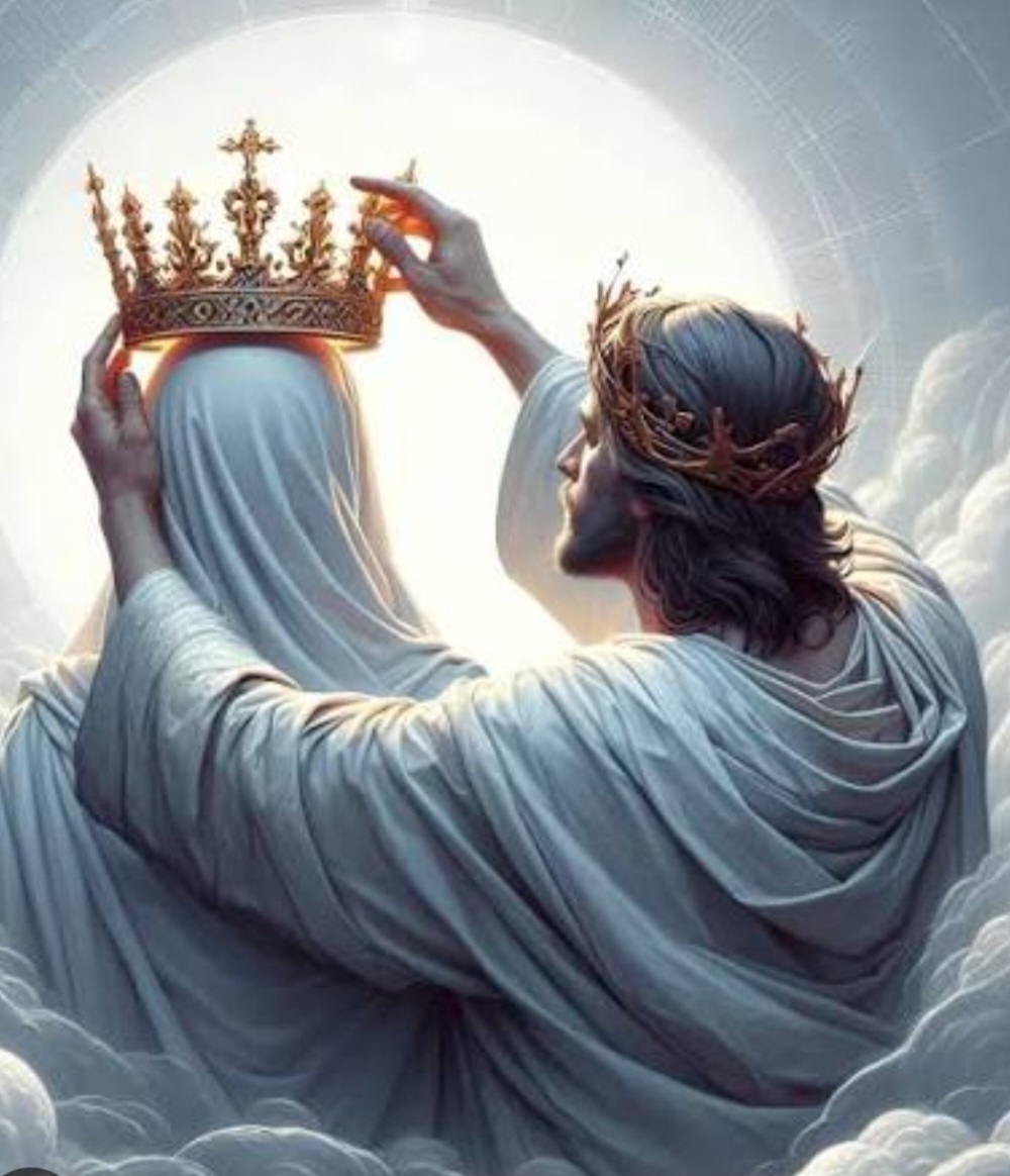 Valkoinen huntu ja sen yllä kruunu" yhdistettynä Raamattuun viittaa vahvasti kristilliseen symboliikkaan, jossa kuvataan Kristuksen morsianta (seurakuntaa) tai morsiuskruunua. Tämä yhdistelmä symboloi puhtautta, pyhyyttä, voittoa ja kuninkaallista asemaa.