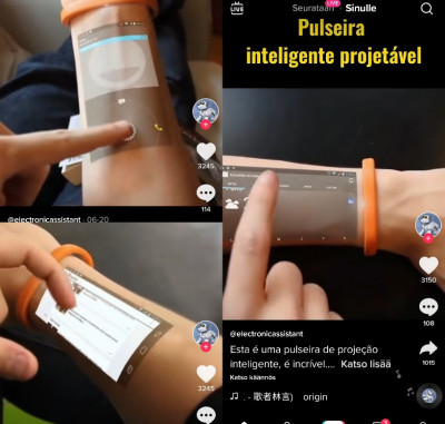 Kuvassa siis rannekorussa jonkinlainen projektori joka heijastaa netin käsivarteen. Mutta tämähän varmaan jo mahdolista nykytekniikalla sitenkin, että käteen tulevassa sirussa on samat komponentit kuin tuossa rannekorussa tai vastaavassa kännykässä.