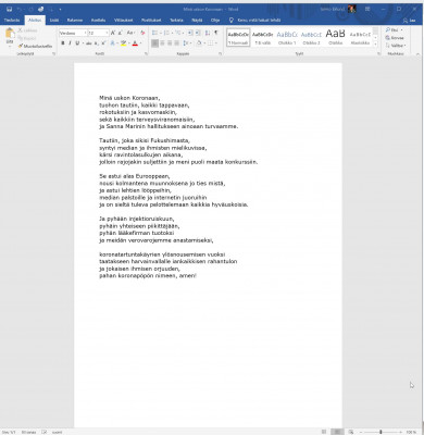 ja Sanna Marinin hallitukseen ainoaan turvaamme.
