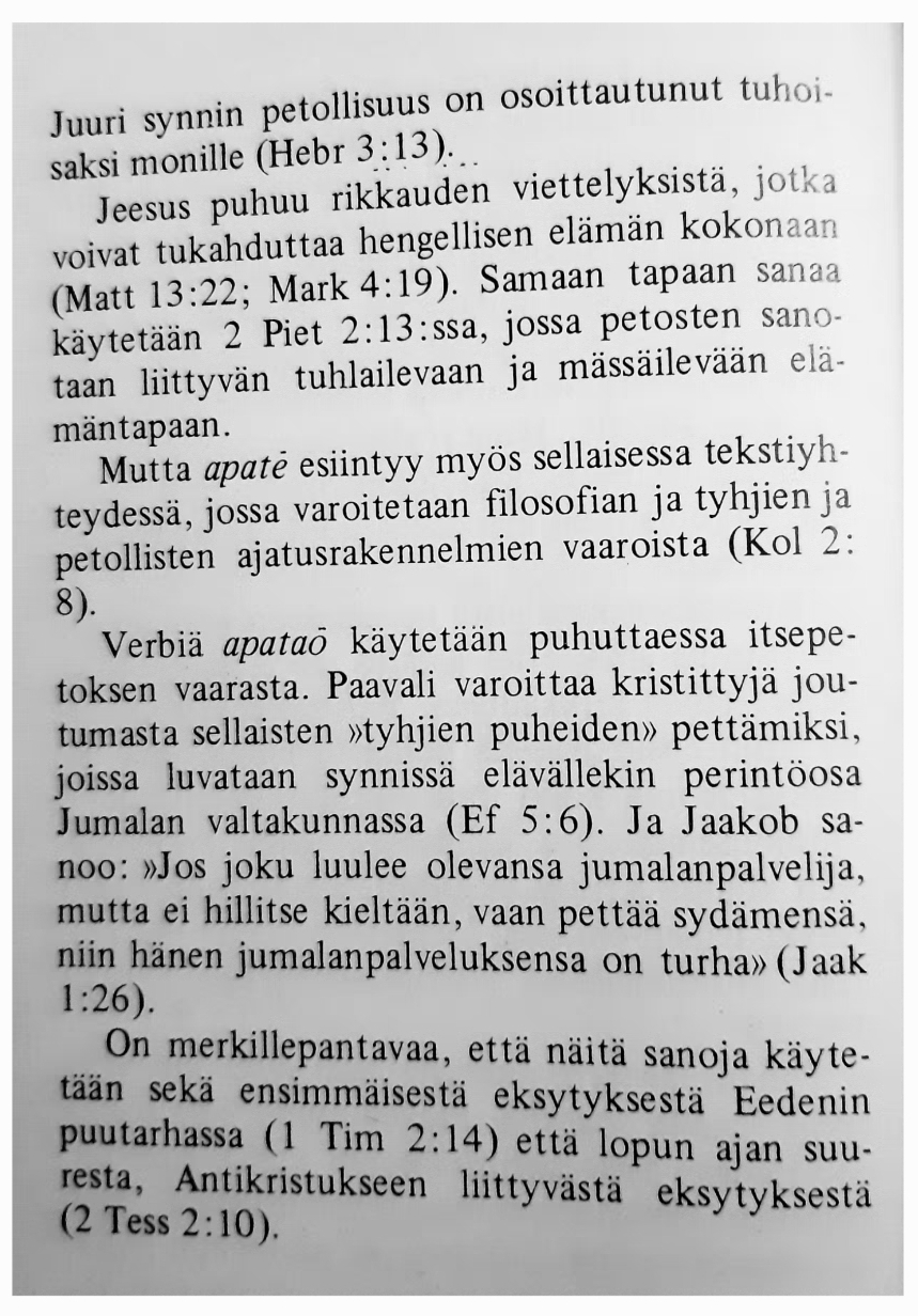 6. Tässä apostoli varoittaa niistä, jotka väittivät, ettei ole vaarallista tehdä syntiä Jumalaa vastaan. Sellaiset puheet hämmensivät ja johtivat ihmisiä harhaan.