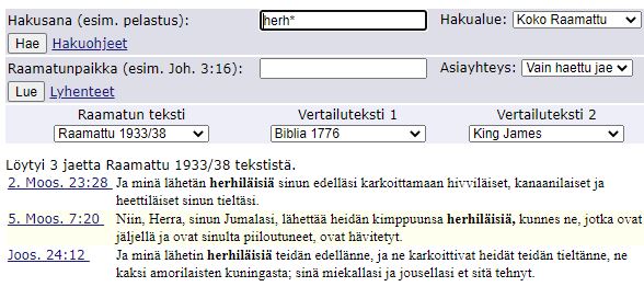 Herhiläiset on Biblia 1776:ssa hörhöläiset ja King Jamesissa hornets