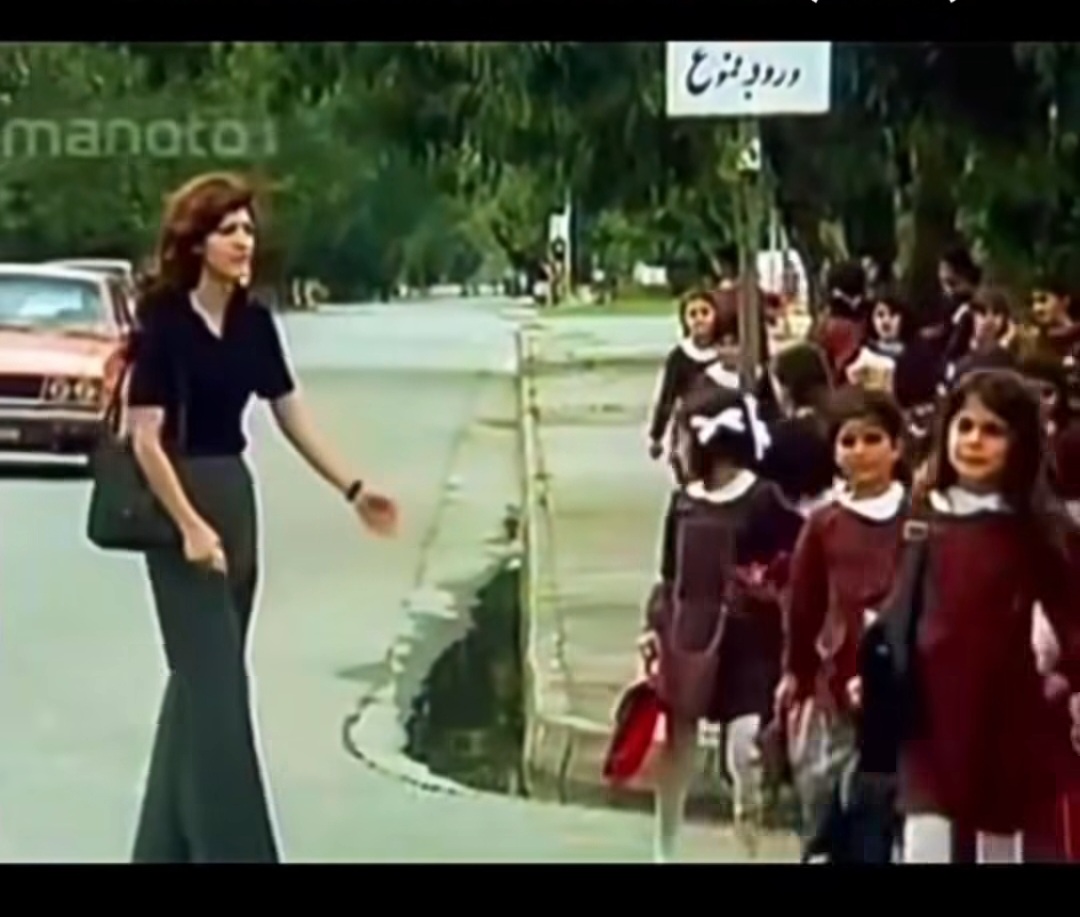Huomiona, kuvakaappaus videolta. Vuoden 1976 Iran. Tytöt matkalla kouluun.