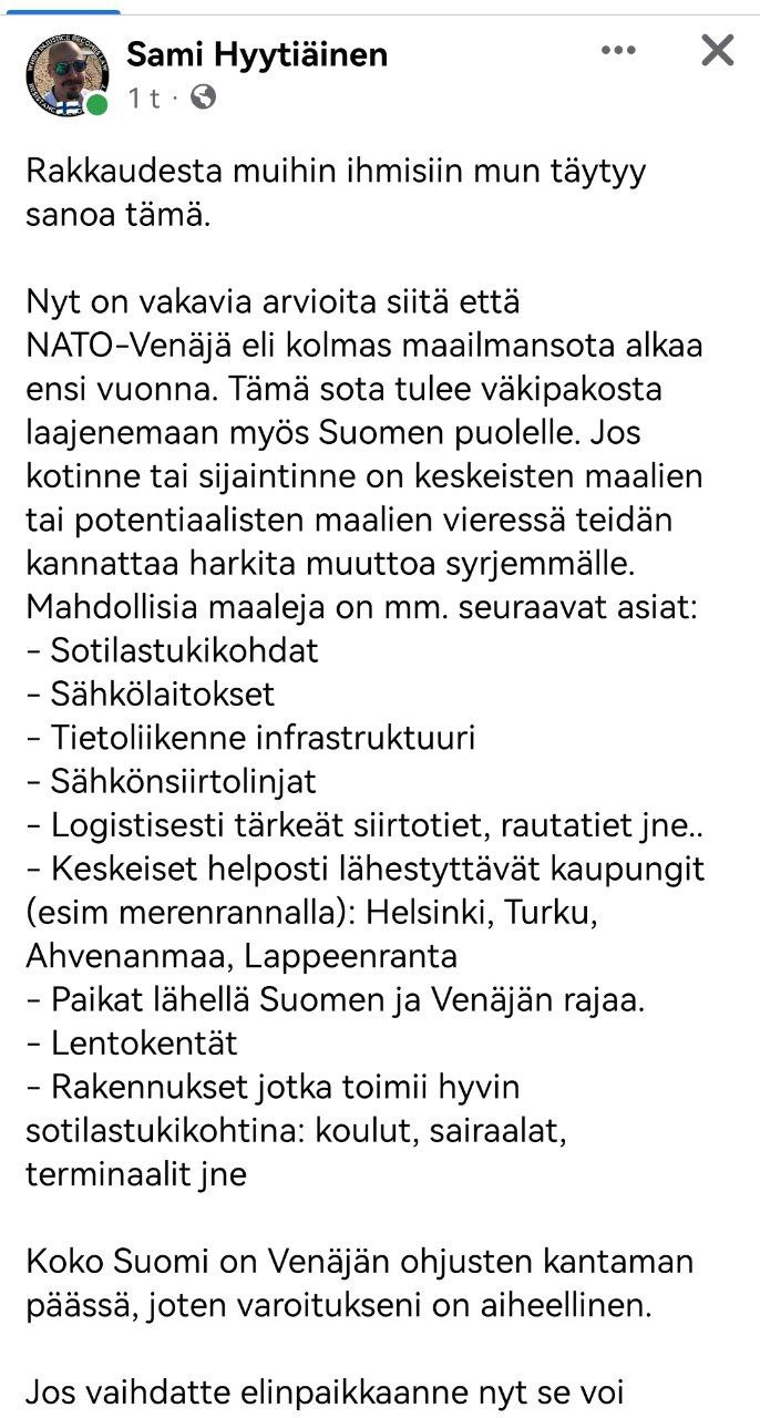 Suomella vaara joutua sotaan 3:n vuoden päästä... ehdollinen...