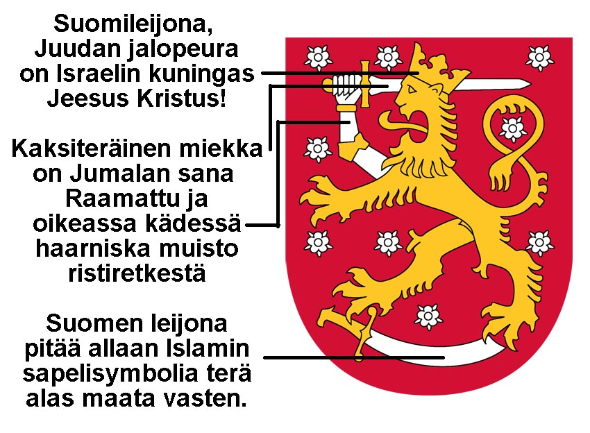 Tuli tänään vastaan tämä Wikipedia-artikkeli, en tiennyt että Israelin ja Suomen yhteys voisi olla näinkin voimakas, ei ihme että Suomen Leijonaa vihataan. Lisäyksenä vielä, Jerusalemin vaakunassa on kaksi oliivipuun oksaa eli kaksi todistajaa. Toinen Jerusalemista ja toinen todellakin täältä Pohjolasta?