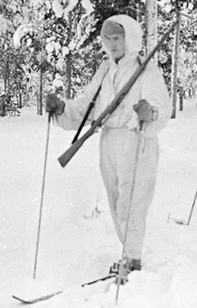 Pelästyin että oliko jo lähdössä puumetsälle. Mutta silmäni oli kiinni ja huomasin että tuo puku oli nyt valkoinen, ilman maastokuvioita."