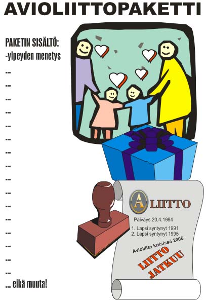 pankkiautomaatille, sieltä sitä rahaa saa. Niinpä! Kun lapsi alkaa tehdä tuttavuutta vastakkaiseen sukupuoleen, hän ensin näkee mallin omista vanhemmistaan, eli onko perheessä ollut Rakkautta vai vain huolehtimista yms. Tämä näkyy selvimmin siinä että lapsi näkee vanhempien hellyydenosoitukset. Jos tätä ei näy, lapsi ei ymmärrä edes olemassaoloaan kunnolla, vaan hakee seksuaalisuutensa vaikka pornografiasta. Siinäpä vasta onkin se paras malli! Siihen kun lisätään lapselle opetettu erojen ja uusien avioliittojen helppous, on soppa syntynyt. Kouluissa ammutaan oppilaita ja lapset voivat pahoin, jota seuraa jotain vielä pahempaa heidän lapsilleen. PYSÄYTÄ ELÄMÄSI SIIS KALKKIVIIVALLE! Tästä alkaa uusi elämä ja ala lukea Raamattua... |