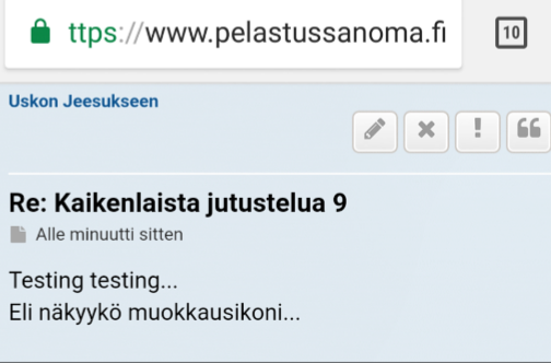 Koska ihmiset joilla on etsikkoaika, saattavat lukea tämän foorumin etsien oikeaa foorumia ja tahtovat tulla pelastetuksi. Aika on vähissä kun Jeesus tulee pian niin ihmiset tahtovat tulla pelastetuksi niin meidän tulisi vaeltaa joka päivä keskinäisessä rakkaudessa ja pitää huolen ettemme astu vahingossa toisen varpaan päälle.
