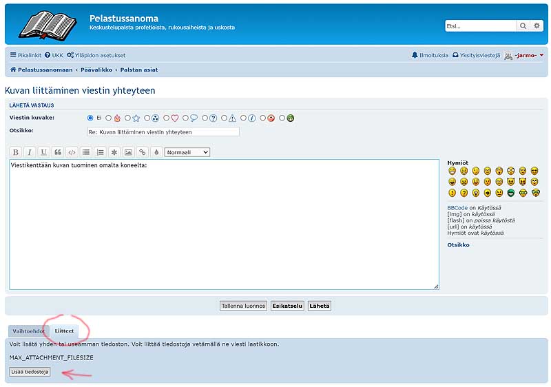 Ohjeet miten kuvia voi liittää viestin yhteyteen!
