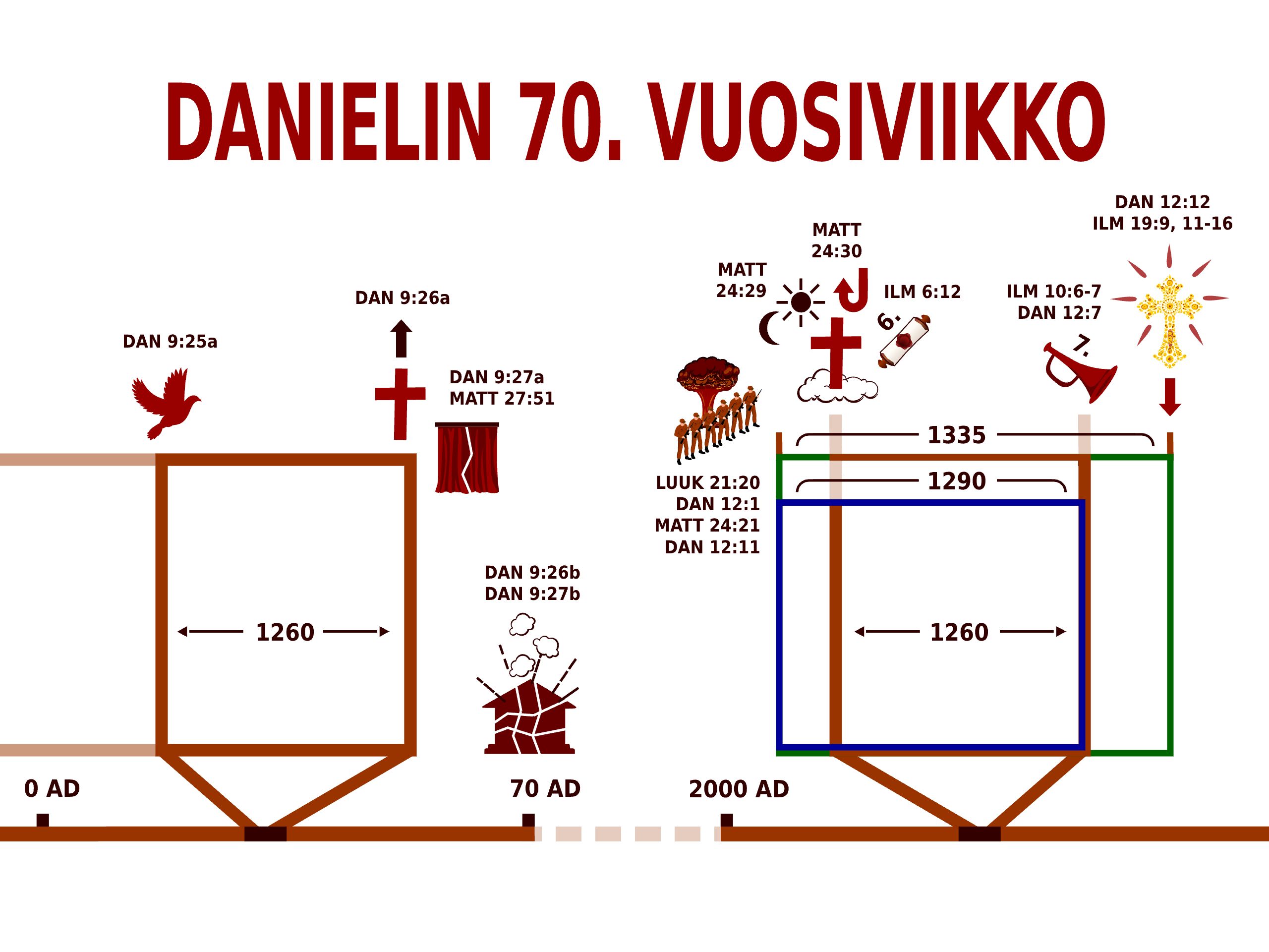 Dan. 9:25a Ja tiedä ja käsitä: siitä ajasta, jolloin tuli se sana, että Jerusalem on jälleen rakennettava, voideltuun, ruhtinaaseen, asti, on kuluva seitsemän vuosiviikkoa; ja kuusikymmentäkaksi vuosiviikkoa.