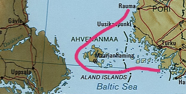 Veikkaan, että sekin on vaikuttanut asiaan, että Ahvenanmaa näyttäisi olevan manner-Suomesta lähtevien saarien "emosaari" tai mantereelta lähtevät saaret muodostavan Ahvenanmaan kanssa yhtenäisen saaristoalueen :?:
