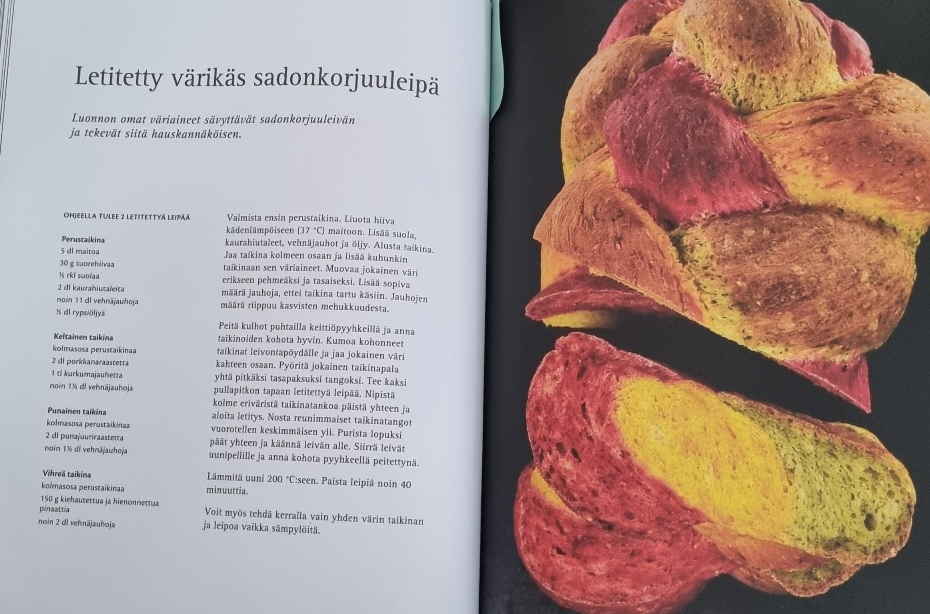 Tossa kirjassa on paljon ohjeita leipiin mihin voi piilottaa kaiken maailman kasviksia ja eilisiä puuroja ja muusseja. Kasvisten kanssa voi näköjään olla reilumpi kätinen. Itselle tuli uutena myös leivät, jotka kohotetaan leivinjauheella tai soodalla jolloin hiivan ja vehnäjauhon voi jättää pois.