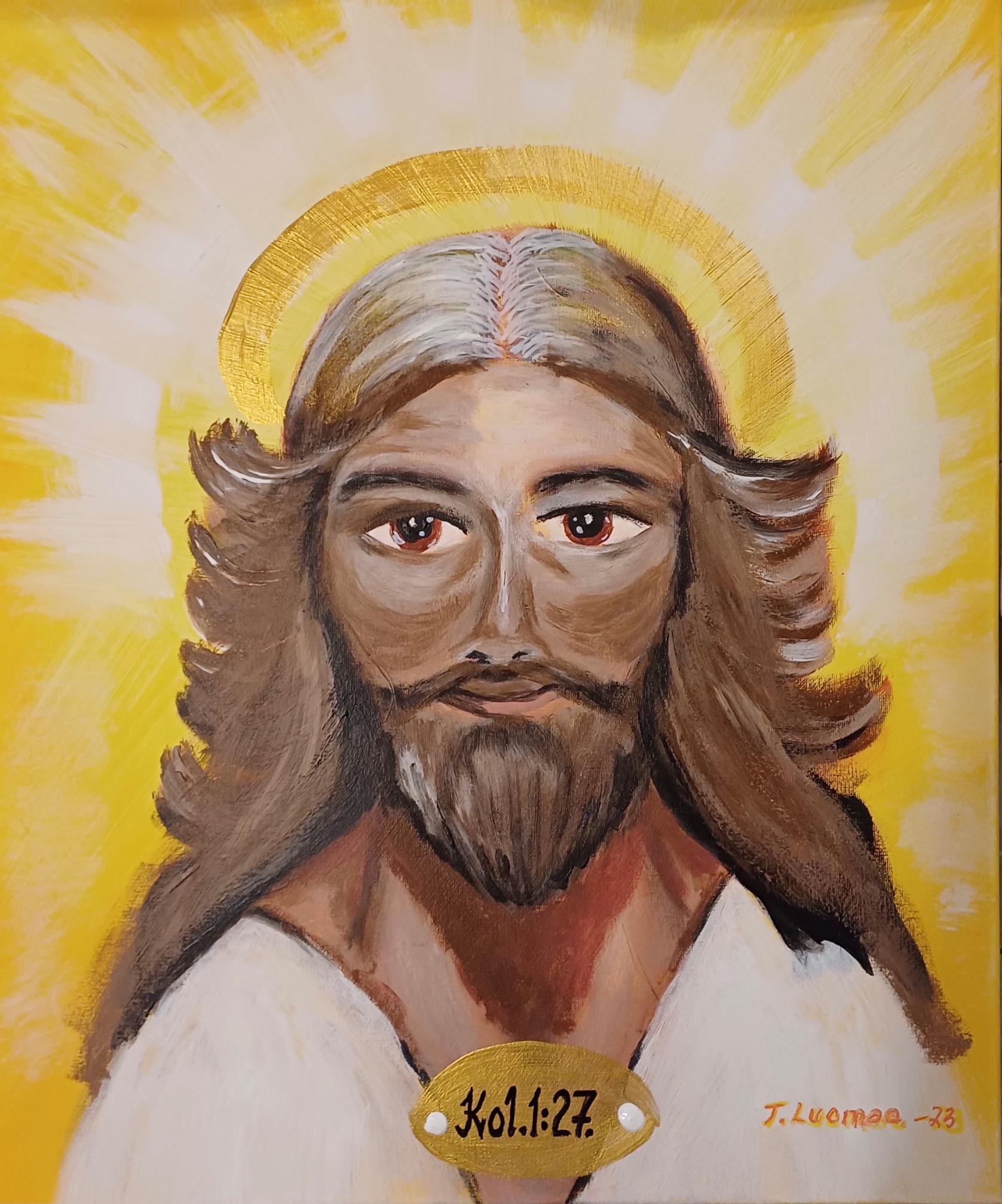 Kun tuota aloin maalaamaan, tai itse asiassa minulla oli mielessä aivan toinen aihe kun tuli tarve maalata tuota. Siinä maalatessa alkoi sydämessä soida:" Jeesus Kristus kirkkauden toivo".