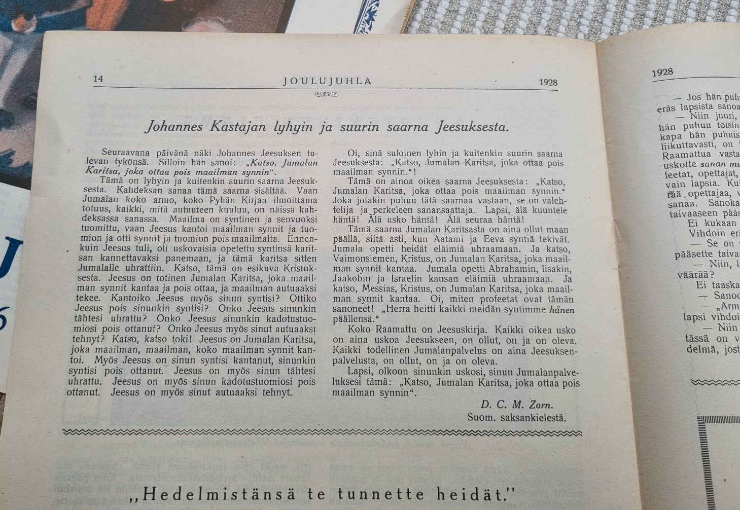 Perikunnan mökkiä siivotessa löytyi äitini säästämät lehdet ja yksi Hiljan kirja. Huomasin vasta kotona että ovatkin aika vanhoja. Mutta sanoma kuten tuohon aikaan oli on varsin puhdasta evankeliumia. En tiedä onko tuo lehti ollut joulun aikaan ilmestynyt kristillinen lehti vai ympärivuoden ilmestynyt julkaisu mutta nuo ainakin olivat joulun ajan numeroita. Onko jollain tietoa asiasta?