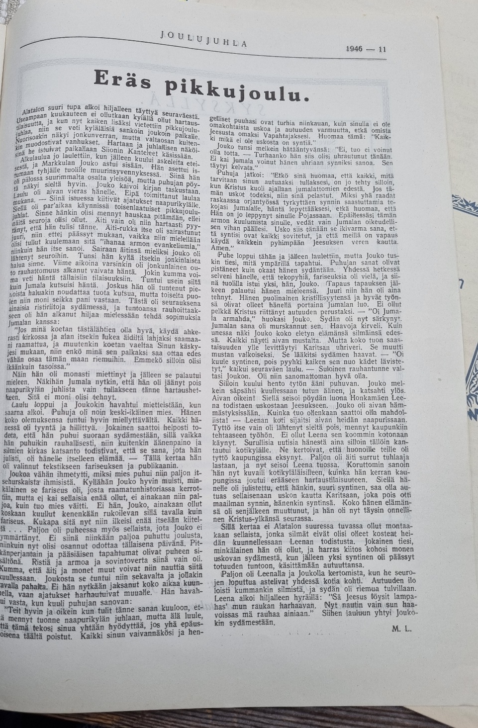 (Joulujuhlalehti nimimerkki L.T.)
