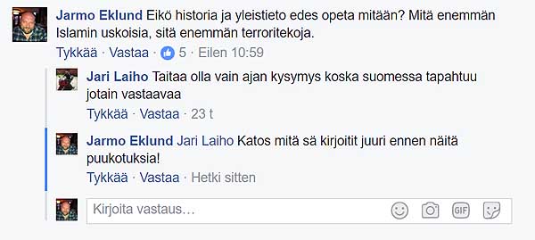 Eräänlaisena todistuksena toimii tämäkin keskustelu joka käytiin Barcelonan tapahtumien keskellä juuri ennen näitä Turun puukotuksia: