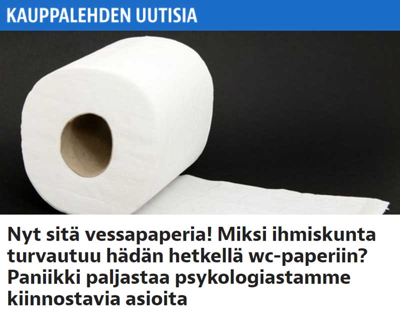 Minusta on oikein kuvaavaa, toistan KUVAAVAA, isoilla kirjaimilla, että ihmiset hamstraavat nyt wc paperia. Jeesus VS wc-paperi, kumpi on nyt tärkeämpää, kun ensin verrataan Raamattua wc paperiin ja nyt hamstrataan juuri wc paperia ja luotetaan siihen.