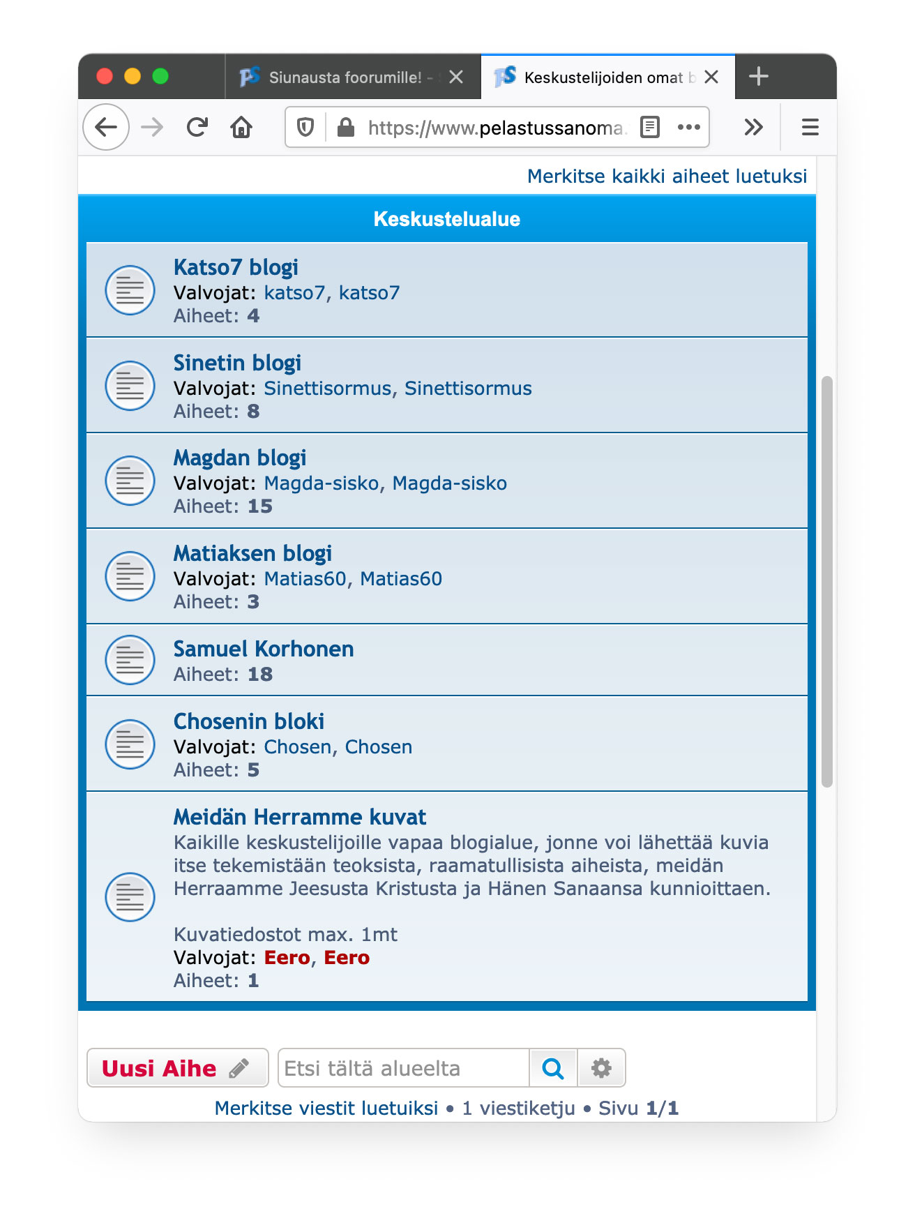 Pyydän nyt varmuuden vuoksi kumminkin, niin on sitten tilit tasan kun kirjat avataan ja Jeesuksen kautta kun tämä tehdään niin silloin ne on. Tämä on keskustelupalsta, johon voi kuka tahansa tuoda omia aiheitaan ja huoliaan ja murheitaan tai niitä uniaan. Sitten niistä esitetään arvioita ja keskustellaan.