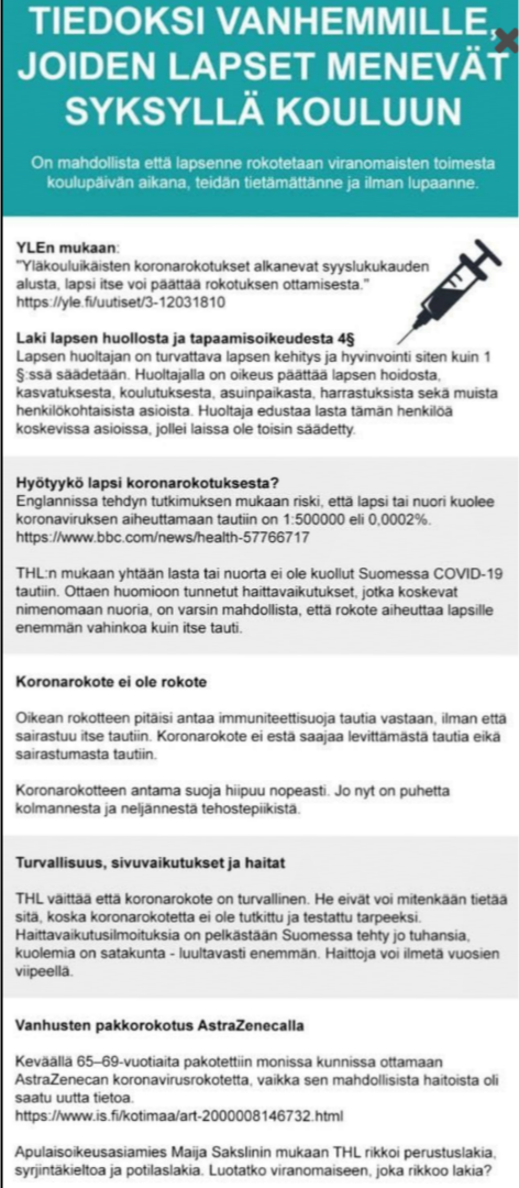 – On tärkeää saada tietoa lasten rokottamisen hyödyistä ja haitoista, ettei koronarokotteesta tule mitään yllättävää haittaa.