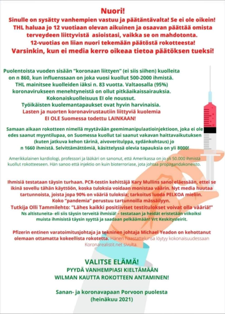 Koska kyseessä on Pfizerin Comirnaty rokote, jonka haittavaikutuksia Rämet Iltalehden mukaan kuvailee vähäisiksi, vaikka kyseiseen rokotteeseen ilmoitusten mukaan on kuollut pelkästään Euroopassa 20.3. tilanteen mukaan jo liki 3000 henkilöä.