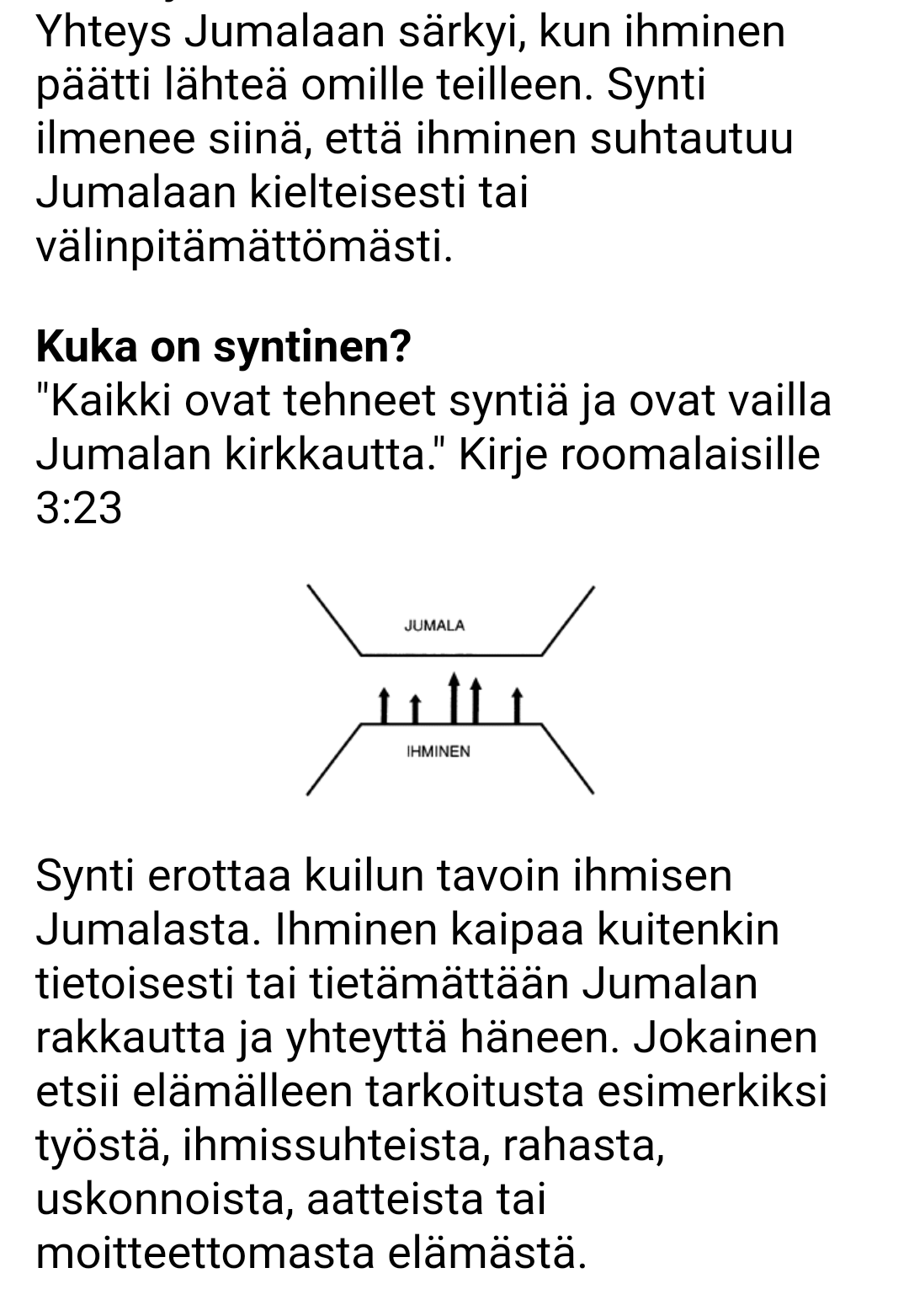 2. Synti on erottanut ihmisenJumalasta ja katkaissut yhteyden heidän väliltään. Siksi ihminen on kadottanut Jumalan rakkauden ja elämän tarkoituksen.