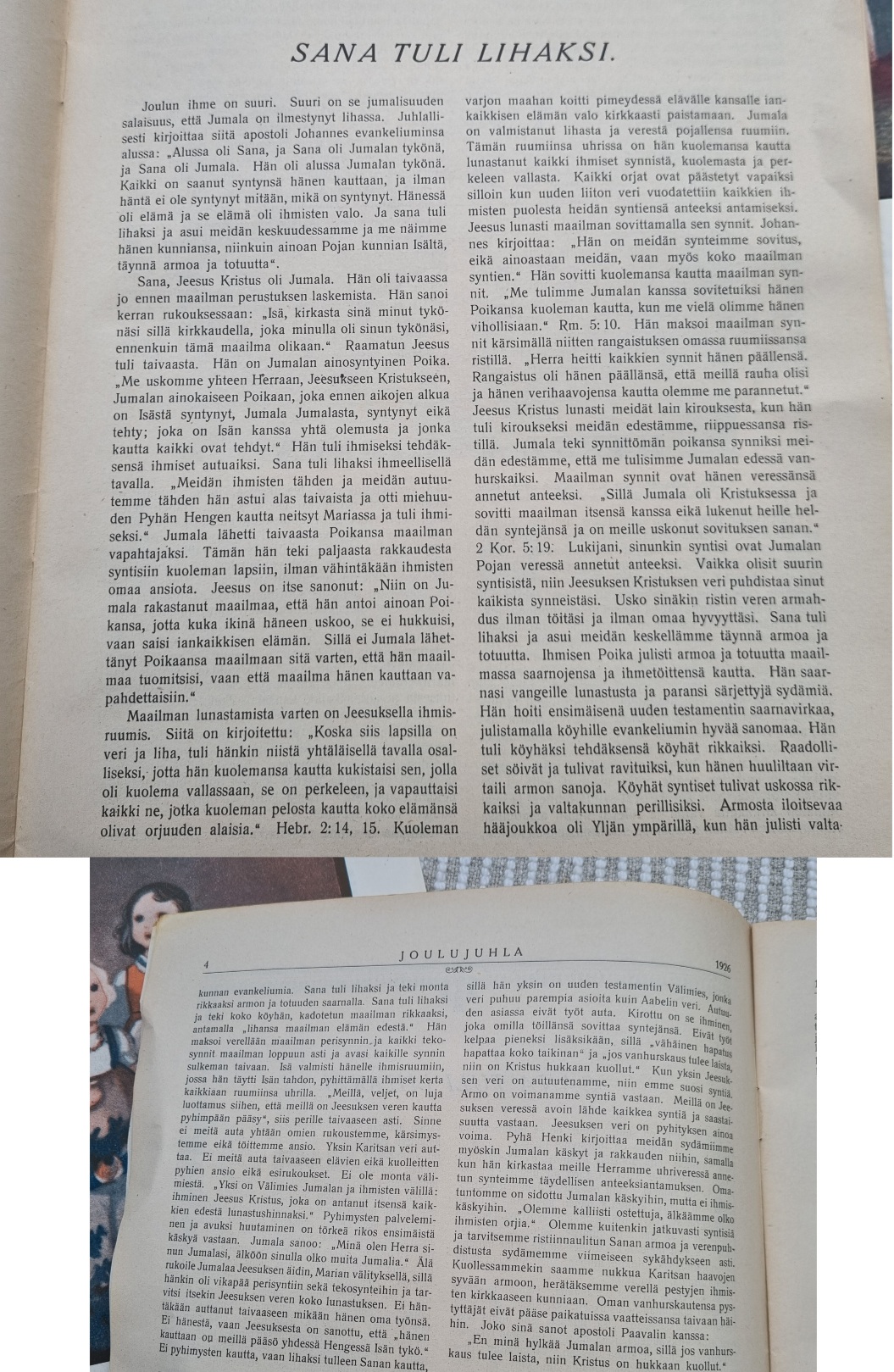 Perikunnan mökkiä siivotessa löytyi äitini säästämät lehdet ja yksi Hiljan kirja. Huomasin vasta kotona että ovatkin aika vanhoja. Mutta sanoma kuten tuohon aikaan oli on varsin puhdasta evankeliumia. En tiedä onko tuo lehti ollut joulun aikaan ilmestynyt kristillinen lehti vai ympärivuoden ilmestynyt julkaisu mutta nuo ainakin olivat joulun ajan numeroita. Onko jollain tietoa asiasta?